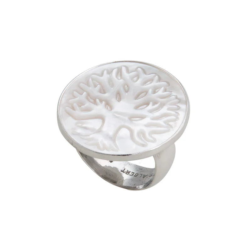 Rooted in meaning and beauty, this Sterling Silver Tree of Life Ring glows with the gentle shimmer of Mother of Pearl. Symbolizing growth and harmony, the Tree of Life is paired with a stone believed to bring protection, calming energy, and intuitive wisdom. Adjustable for the perfect fit, it’s a radiant piece that carries both style and spirit.